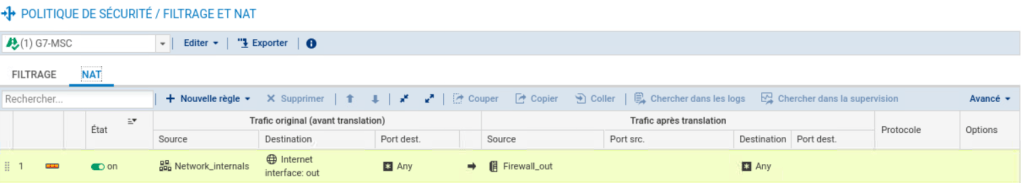 Finalement nous allons implémenter ce filtrage dans nos politiques de sécurité :