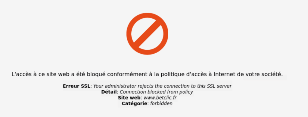 Pour des raisons propres à l’organisation, certains sites web ne sont pas autorisés depuis le réseau MSC. Nous choisirons winamax.fr et betclic.fr pour tester notre filtrage.